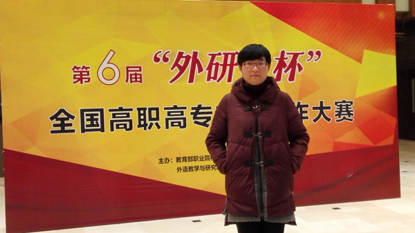 2015年11月15日,外语与商务学院13级英语教育专业学生沙莎在2015年第六届“外研社杯”全国高职高专英语写作大赛江苏赛区复赛中脱颖而出,获得一等奖。本次大赛共有68所高职高专院校,170名选手参加了比赛。2015年12月9日,沙莎代表江苏赛区赴北京参加了第六届“外研社杯”全国高职高专英语写作大赛总决赛,全国24个省、市、自治区的200余名选手参加了总决赛。经过评委一周的紧张评阅,沙莎夺得了此次全国高职高专英语写作大赛专业英语组二等奖。这是外语与商务学院学生第一次在全国写作大赛中获此殊荣。沙莎的指导教师为外语与商务学院的荆艳君老师,她指导经验丰富,曾经指导多位学生在全国高职高专英语写作大赛中获奖。