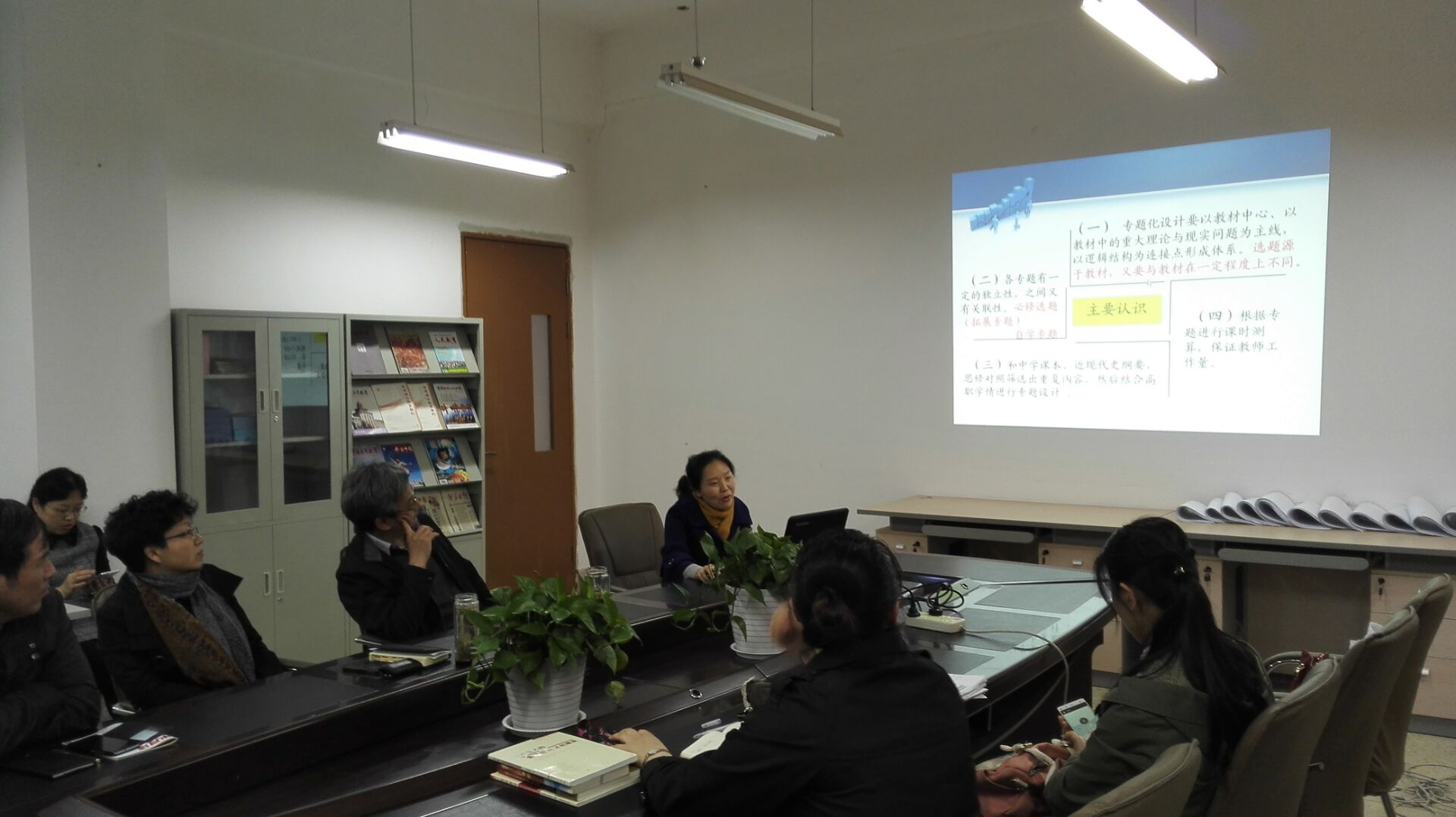 汇报会上,课程组组长杨文革老师分析了该课程的教学目标、教学主题、教学主线及教学重点,主要从专题的选题、专题的拓展及专题的设计等三个方面,对该课程专题教学改革的新进展做了详细汇报。杨老师结合2015版新教材体系汇报了两套专题教学设计方案,每个专题又做了详尽的必修专题和拓展专题的解读。最后,杨老师还就课程实践教学项目和形式创新等问题做了汇报。