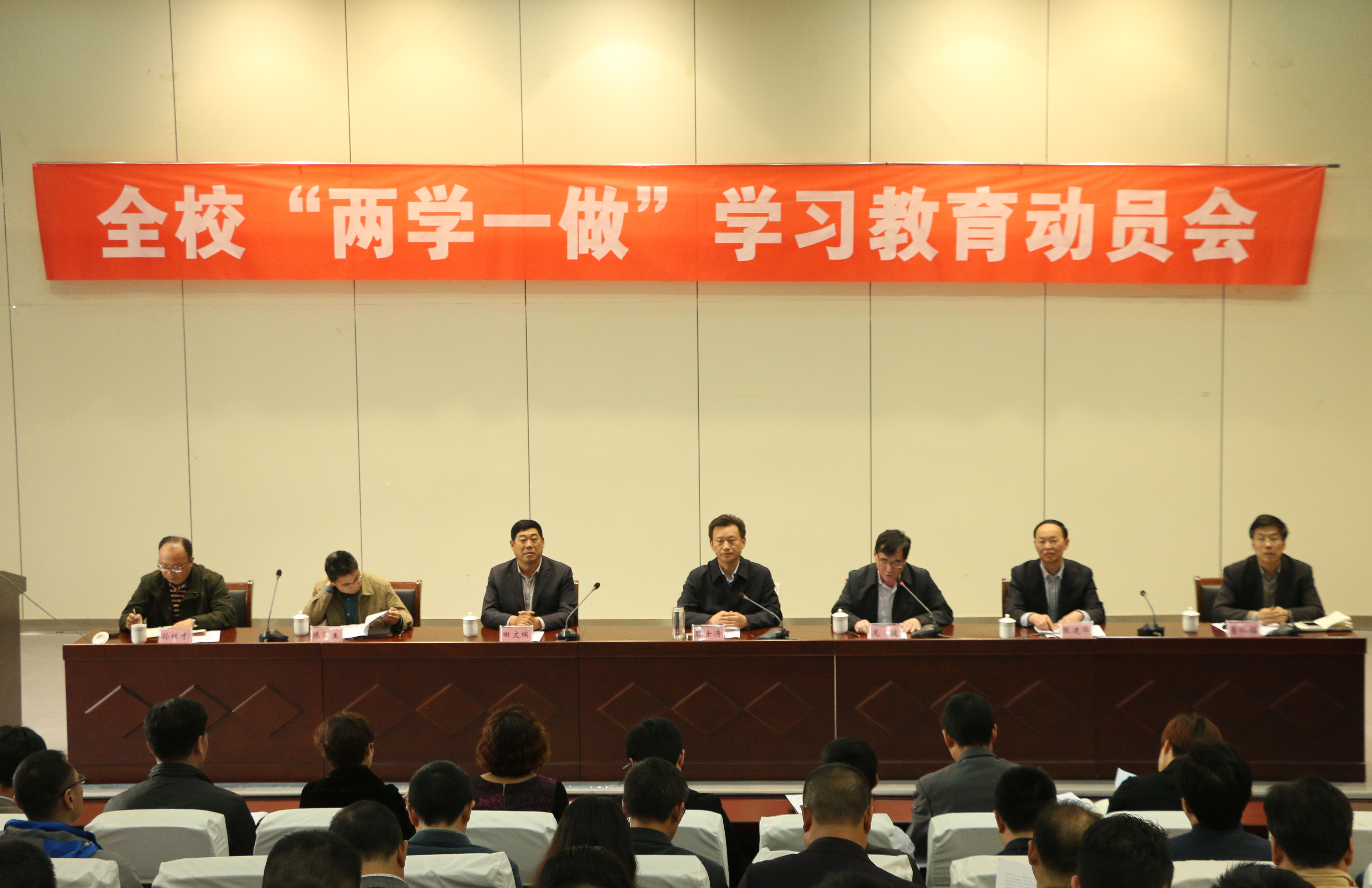 滕士涛指出,今年中央部署在全体党员中开展“学党章党规、学系列讲话,做合格党员”学习教育,这是继党的群众路线教育实践活动、“三严三实”专题教育之后,深化党内教育的又一次重要实践,也是推动学习教育从“关键少数”向全体党员拓展,从集中性教育活动向经常性教育延伸的重要举措。召开“两学一做”学习教育动员会议,对学校“两学一做”学习教育进行具体部署,目的是动员大家以高度的政治责任感、良好的精神状态和扎实的工作作风,迅速投身到学习教育中来,确保学习教育取得预期效果。
