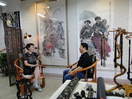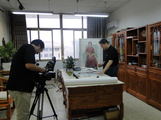 5月27日下午,在彦涵楼A511画室,连云港电视台《人文360》栏目组对美术学院院长周燕弟教授进行专访。