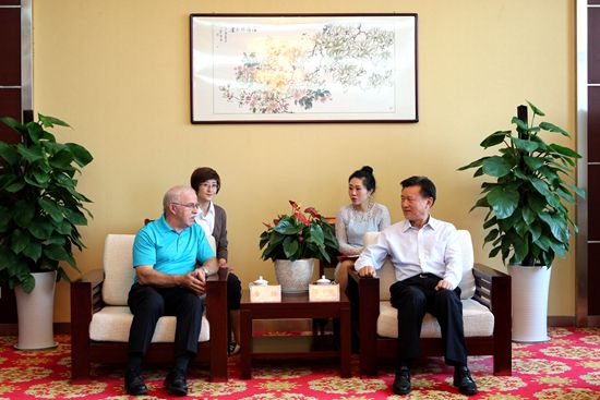(滕士涛与加拿大圣劳伦斯学院唐•杨校长亲切交谈)